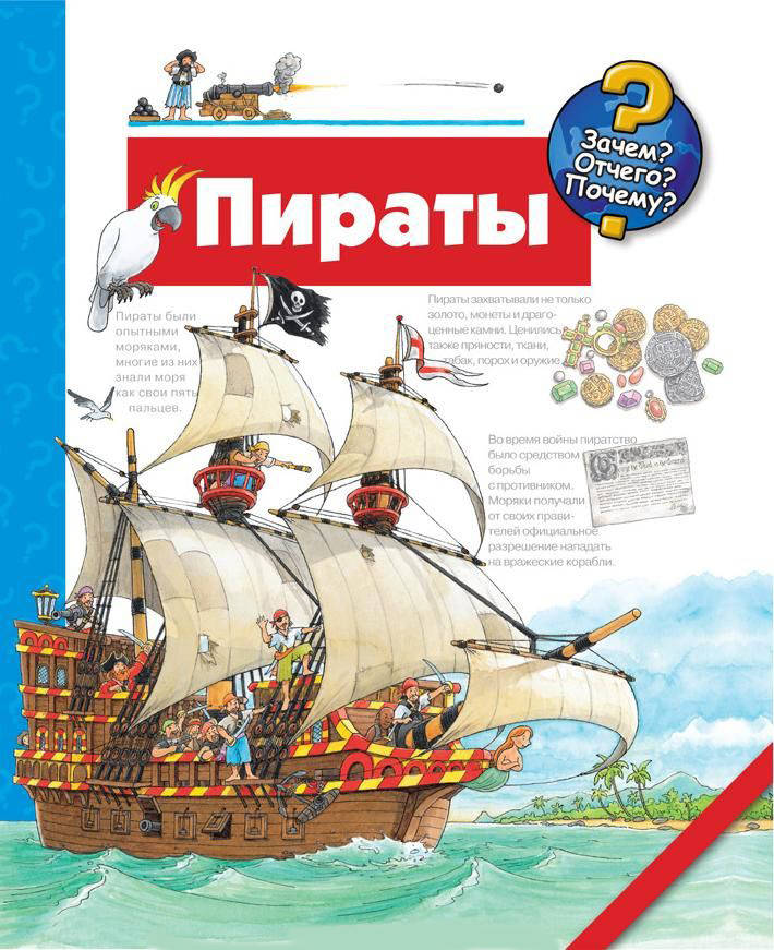 Богато иллюстрированных изданий, рассказывающих легенды о пиратах и таинственных сокровищах, а заодно о реальном быте, флагах, оружии и тактике, множество. «Пиратская книга» Али Митгуш написана специально для дошкольников.