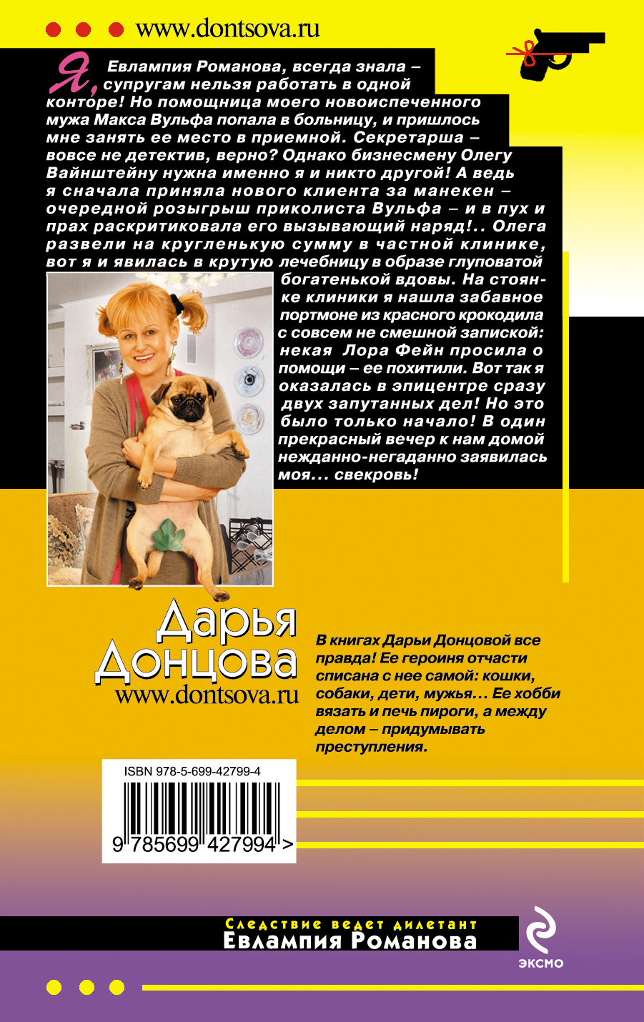 Я, Евлампия Романова, попала в очередную переделку. А началось все с того, что на меня напал какой-то псих и, приставив дуло к виску, велел найти убийцу… Курочкорябского. Когда я, клацая зубами от страха, вернулась домой, очередной сюрприз не заставил себя ждать. Подруга Катя нашла прекрасный заг…