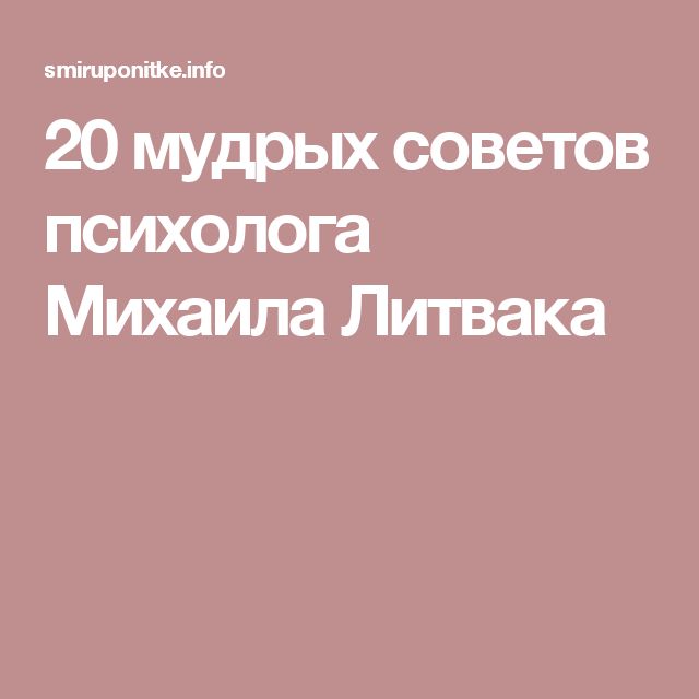 20 мудрых советов психолога михаила литвака: 15 мудрых советов психолога Михаила Литвака