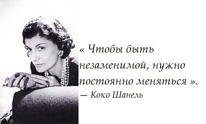2. «Чтобы быть незаменимой, нужно все время меняться». Коко Шанель