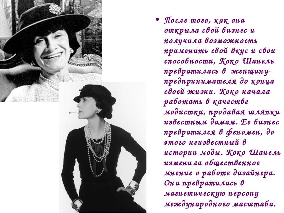 Мадемуазель Коко была известна не только своими модными талантами, но и безупречным деловым чутьем и бесстрашным взглядом на жизнь.