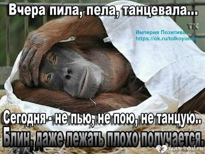 Я с похмелья каждый раз умираю так, что я думаю, что следующие лет 100 вообще больше не буду пить.