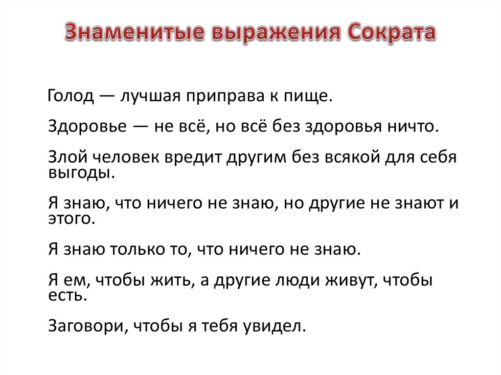 (Мало кто знает, что известный афоризм Сократа «Я знаю только то, что ничего не знаю» на самом деле имеет продолжение, которое полностью меняет привычное его значение: «Я знаю только то, что ничего не знаю.
