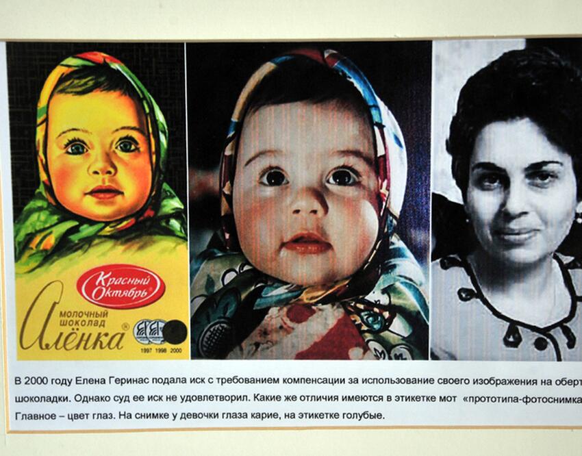Еще через год Елена Гериназ вообще подала заявление в суд, она хотела получить компенсацию за использование своего изображения на обертке шоколада. Дело в том, что «Красный Октябрь» спас фотошоп, если можно так сказать. Девочку с фотографии очень стильно изменили, например, глаза у Елены карие, а у «Аленки» — голубые.