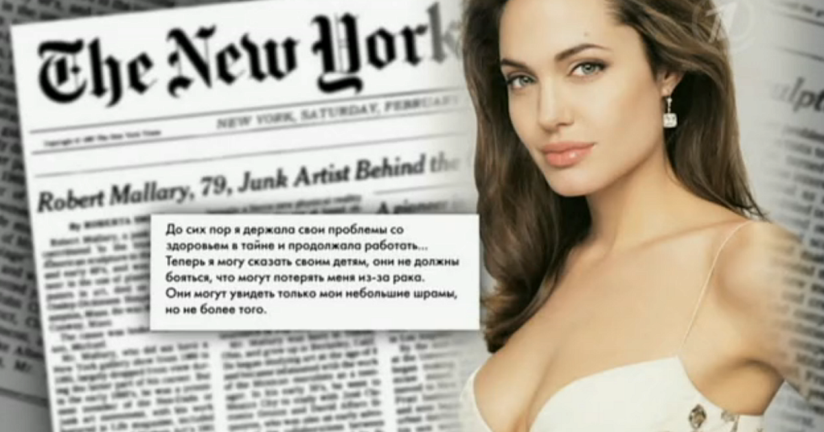 рак. Два года спустя она написала еще одну статью, в которой сообщила, что ей также сделали операцию по удалению яичников и фаллопиевых труб. Было неслыханно слышать, как голливудская знаменитость на пике своей карьеры обсуждает эти вопросы. Но это изменило правила игры. Год спустя в британском отчете было обнаружено, что ее решение обнародовать информацию о мастэктомии привело к удвоению числа направлений NHS для генетических тестов на риск рака груди.