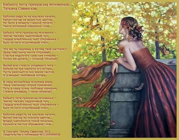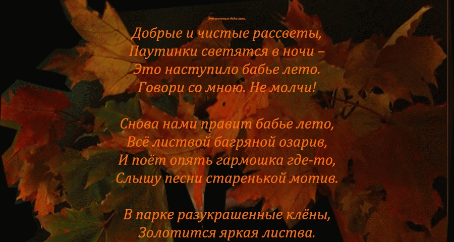 - Бабье лето Мягкая вуаль затуманивает нежное небо, И наполовину скрывает от задумчивых глаз Бронзовые знаки падения; А […] …