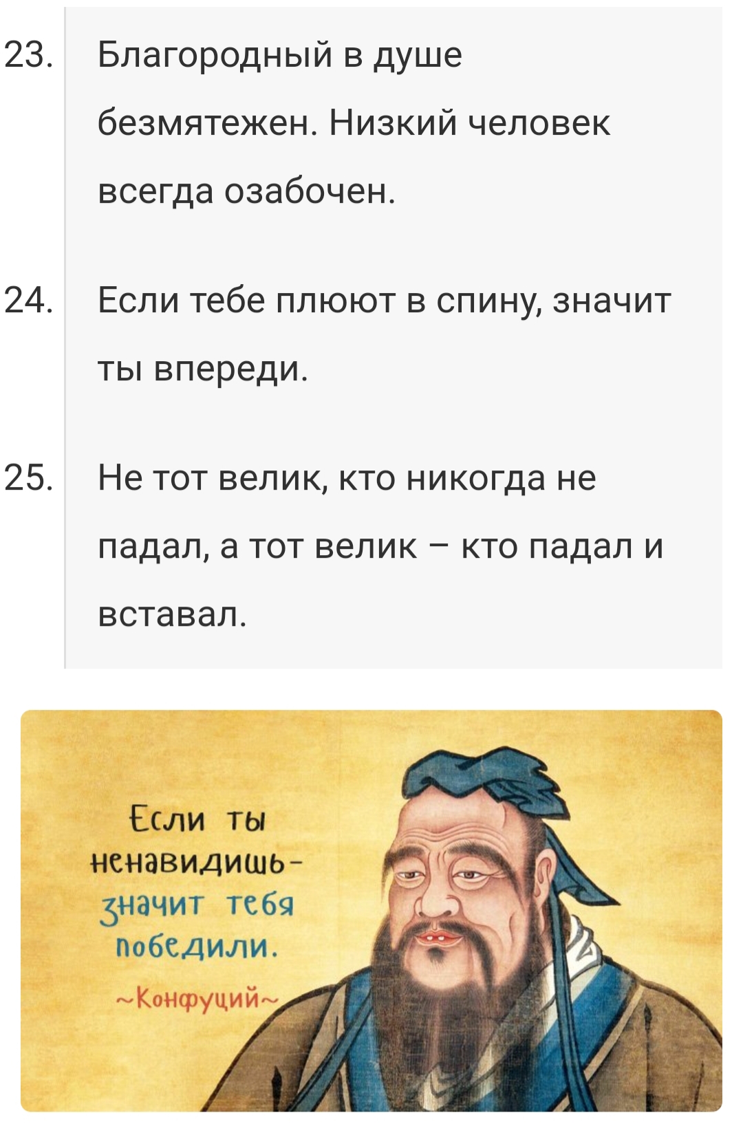 • Благородный муж помогает людям увидеть то, что есть в них доброго, и не учит людей видеть то, что есть в них дурного. А низкий человек поступает наоборот.