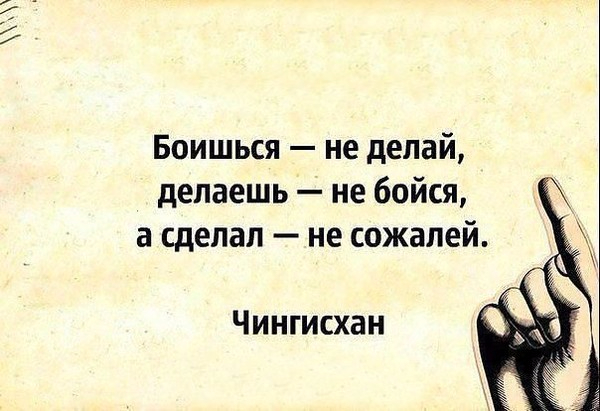 Боишься — не делай, делаешь — не бойся, а сделал — не сожалей. @ Чингисхан — Обсуждай