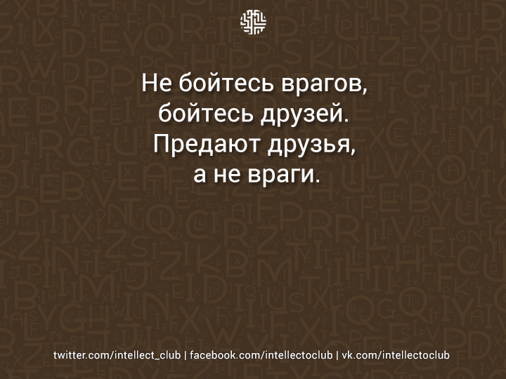 Бойся не врага: Не бойтесь врагов, бойтесь друзей. Предают друзья, а не враги. Джонни