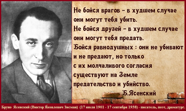 Бойся равнодушных – они не убивают и не предают, но только с их молчаливого согласия существует на земле предательство и убийство.