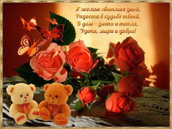 От всей души желаю вам, чтобы каждый день и каждый час вы были любимы и счастливы!»