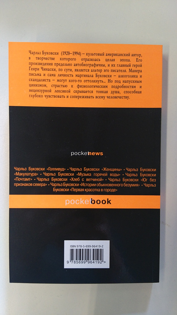 Это первый роман, который я читал с удовольствием и первый роман Буковски, что я прочёл. Не буду врать, несколько раз мне хотелось забросить книгу, но прочитав ещё главу, я вспоминал почему начал её.