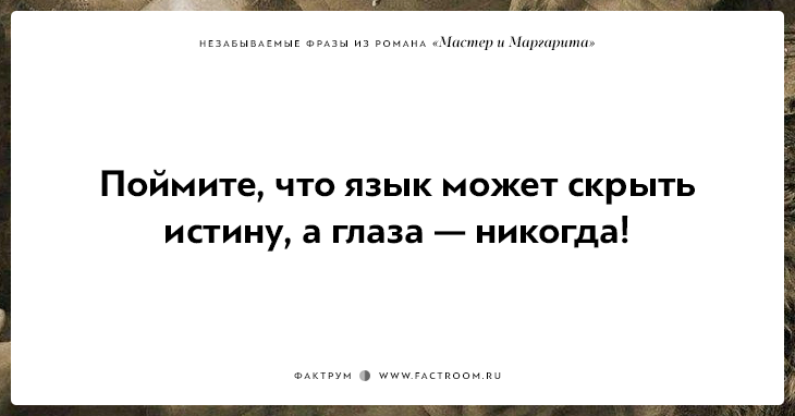 Поймите, что язык может скрыть истину, а глаза — никогда! М. Булгаков «Мастер и Маргарита»
