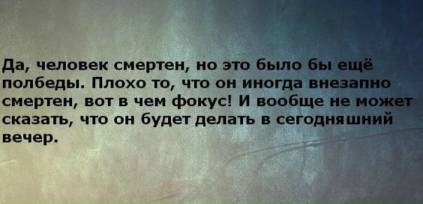 Человек смертен, но это было бы ещё полбеды.Плохо то,что он иногда внезапно