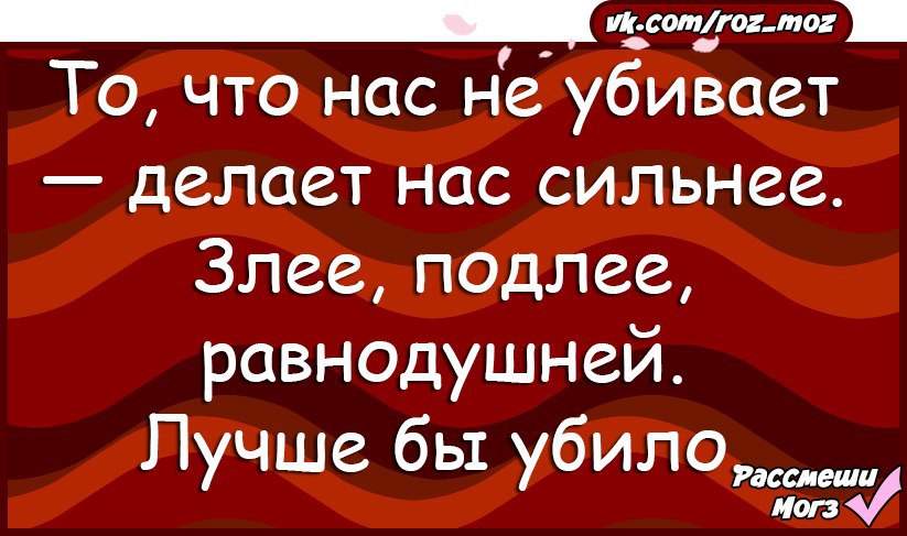Что меня не убивает делает меня сильнее кто сказал: «Все, что меня не убивает, делает меня сильнее!», — сказал Ницше, сошел с ума и умер