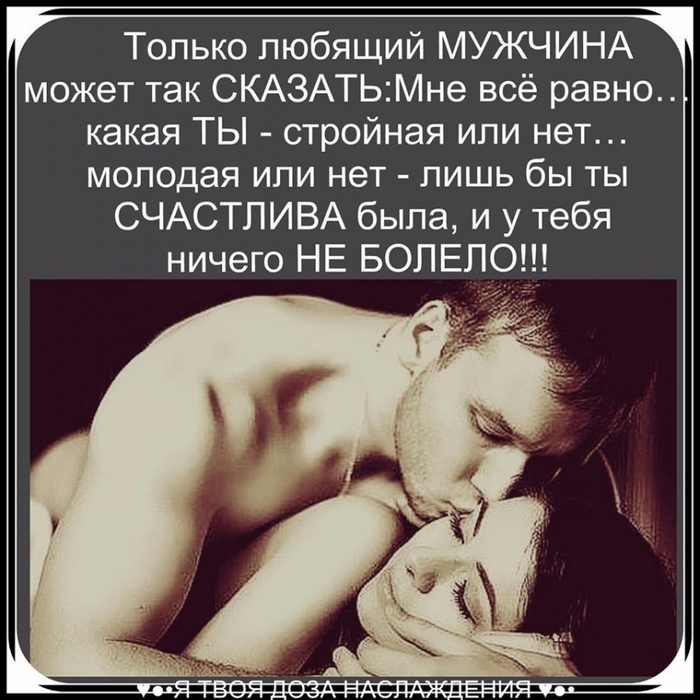 8. Когда мужчина любит женщину, он гордится ею, будь она толстой или худой, уродливой или прекрасной, и готов показать ее всему миру как свою женщину. Здесь женщина чувствует себя живой и уверена, что этот мужчина навсегда принадлежит ей.