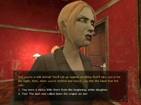 Кроме того, Малкавин дает всем точные прозвища. Торговца в ломбарде он называет Торговец Смертью — и правда, он скрытно торгует оружием. Сестер Терезу и Жанет, кстати, тоже Малкавиане, он называет дочерьми Януса, князя Лакруа он называет Шутом, а регента Тремеров Штрауса он называет истинным королем, ну и он знает, кто такой таксист.