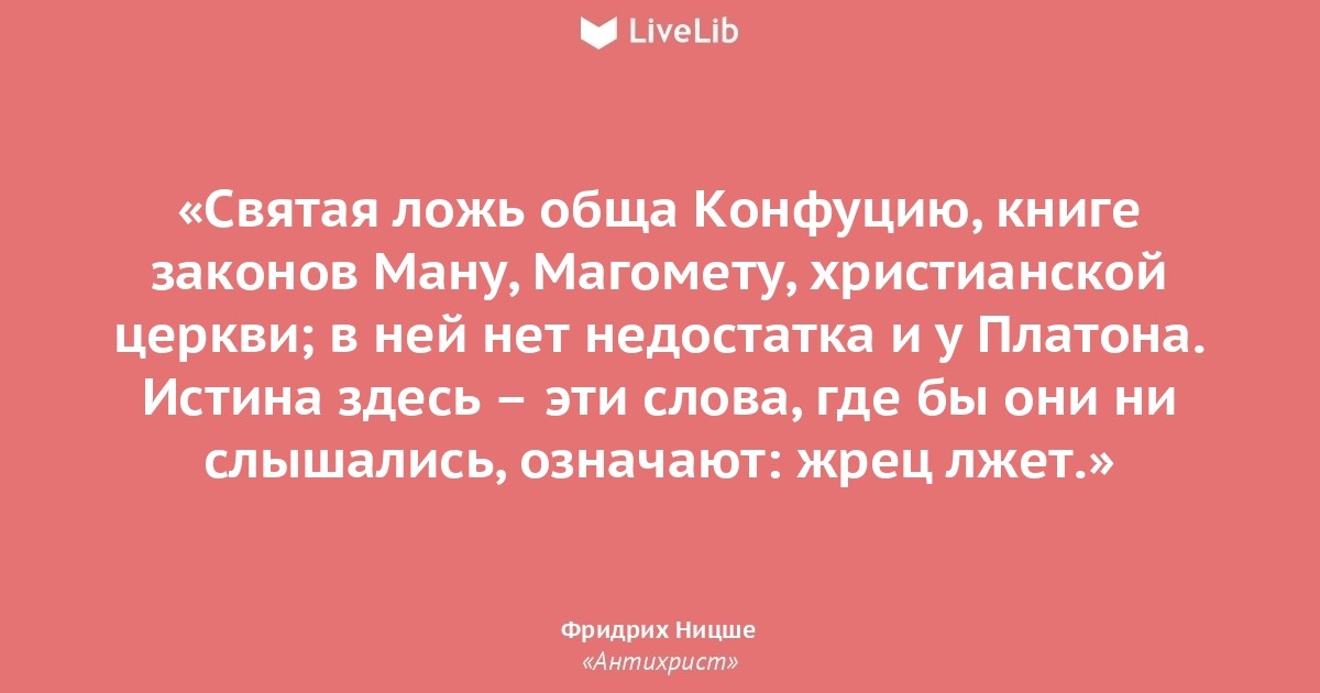 Я осуждаю христианство, я выдвигаю против христианской церкви страшнейшие из всех обвинений, какие только когда-нибудь бывали в устах обвинителя. По-моему, это есть высшее из всех мыслимых извращений, оно имело волю к последнему извращению, какое только было возможно. Христианская церковь ничего не оставила нетронутым в своей порче, она обесценила всякую ценность, из всякой истины она сделала ложь, из всего честного — душевную низость. Осмеливаются ещё мне говорить о её «гуманитарных» благословениях! Удалить какое-нибудь бедствие — это шло глубоко вразрез с её пользой: она жила бедствиями, она создавала бедствия, чтобы себя увековечить… Червь греха, например, таким бедствием впервые церковь обогатило человечество! — «Равенство душ перед Богом», эта фальшь, этот предлог для rancunes всех низменно настроенных, это взрывчатое вещество мысли, которое сделалось наконец революцией, современной идеей и принципом упадка всего общественного порядка, — таков христианский динамит… | |