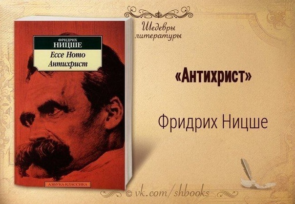 Всё это произведение Ницше можно смело растащить на цитаты. Весь мир верит в это; но чему только не верит весь мир! «Антихрист» или «Антихристианин» (встречаются оба названия) — философский трактат на тему несостоятельности христианства как религии, да впрочем и религии в целом. «Не судите!» — говорят они, но сами посылают в ад все, что стоит у них на пути. Это одно из тех произведений, о которых сложно говорить (всё-таки это философская работа, еще и на тему религии), но прочитать его определенно стоит. По крайней мере тем, чьи чувства не настолько изнежены, чтобы оскорбляться от чего-то подобного (как стало нынче модно). К счастью, книги для большинства есть только литература. Ecce Homo. Антихрист Аргументы Антихриста можно рассматривать как продолжение аргумента, рассматриваемого в «Происхождении видов Дарвина», в котором утверждается, что фундаментальная система, которая продвигает эволюцию, — это выживание наиболее приспособленных. В «Антихристе» Ницше излагает философские и религиозные заявления этого естественного взгляда. Книга начинается с проталкивания христианской морали вверх дном, утверждая, что единственной истинной моралью является сила, а слабость — единственное истинное зло. Книга продолжает объяснять, что многие философские прорывы в Европе в свое время встретили сопротивление и враждебность, а именно примат научной мысли в соответствии с научным методом и постхристианской мыслью, которую он начал формулировать в предыдущих работах. Он объясняет, что христианство предлагает защиту слабым, одновременно позволяя силе быть неестественным, чисто обманным путем через церковных лидеров. Другим основным аргументом является аргумент против сверхъестественного или духовного. Он объявляет духовность- ложью и говорит, что те, кто ссылаются на свои системы, по существу нарушают природу, чтобы получить контроль над слабыми и глупыми. В христианстве предлагается мораль, предлагающая защиту всем людям через концепцию благотворительности. Понимать власть, как высшее благо, а не христианское милосердие, — это то, что христианские писатели называют злом, но Ницше замечает, что в свете научной мысли нет необходимости верить этим системам, и мы должны вернуться к истинной системе, которую мы чувствуем в нашем самом существе, как животные. В итоге: Ecce Homo. Антихрист