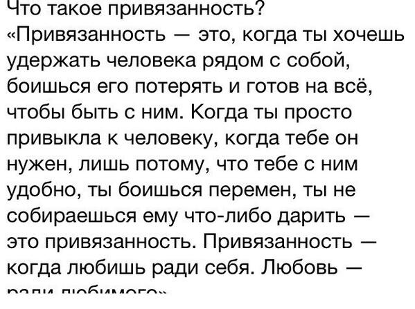 .. И всё же вопросов много… Как это? Когда оно появляется? И вообще можно ли это как то «забыть», «убрать», избавиться?… Хорошо ли или плохо?… И самый главный вопрос чем эта» привязанность» отличается от любви?… Я долго думала, рассуждала и искала на просторах интернета… И каждый человек думает по разному… У кого-то это ассоциируется с заботой и вниманием…