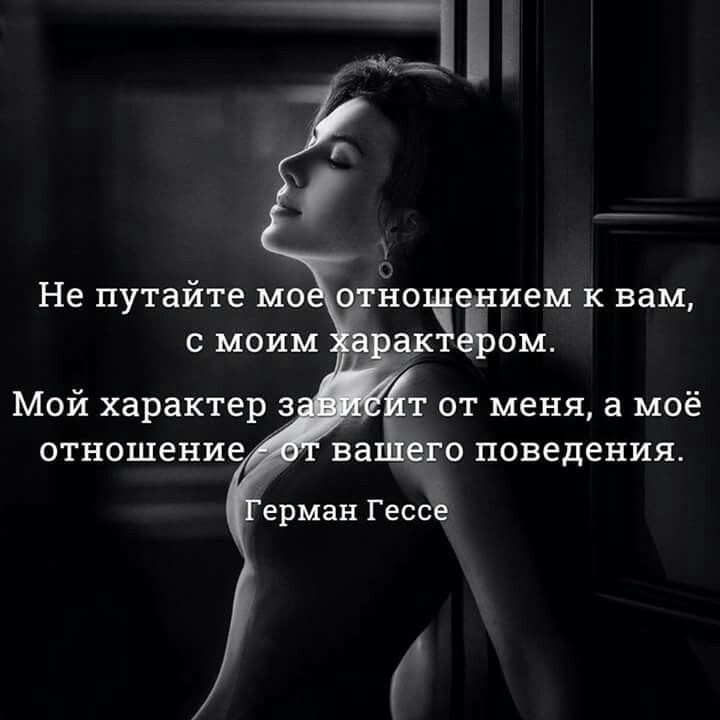 Никогда не путай мой характер с моим отношением. Мой характер зависит от меня, а моё отношение – от твоего поведения.