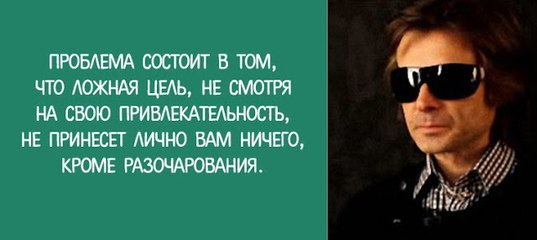 «Прочитал вашу книгу, заинтересовался. Оказалось, что я уже счастливо живу по ней. Дело в том, что мне хорошо удается понизить важность. Но вот цели своего существования в упор не вижу. Все, чего я хочу, — это какие-то мелкие, меркантильные желания, которые, кстати, слабо согласуются с тем, чем я сейчас занимаюсь. В идеале я хотел бы много путешествовать, жить долго в полном здравии, работать мало (работать я не люблю в принципе), получать много, жить с женой, но при этом иметь много других красивых женщин, пользоваться успехам в моём окружении.