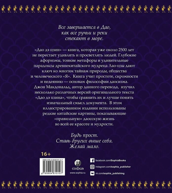 Основная идея Дао Дэ Цзин (также известная как Дао Дэ Цзин) — жить в гармонии и мире. Независимо от того, какое у вас ремесло, призвание или образ жизни, мудрость этого классического китайского произведения VI века до н.
