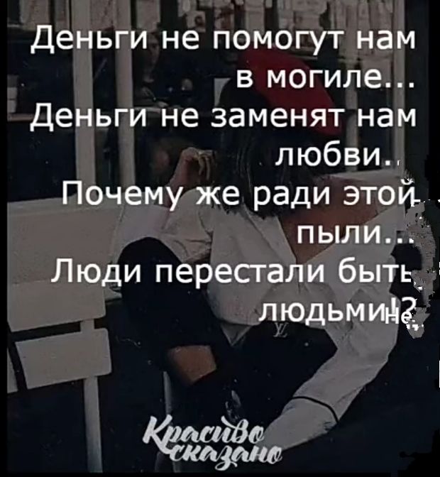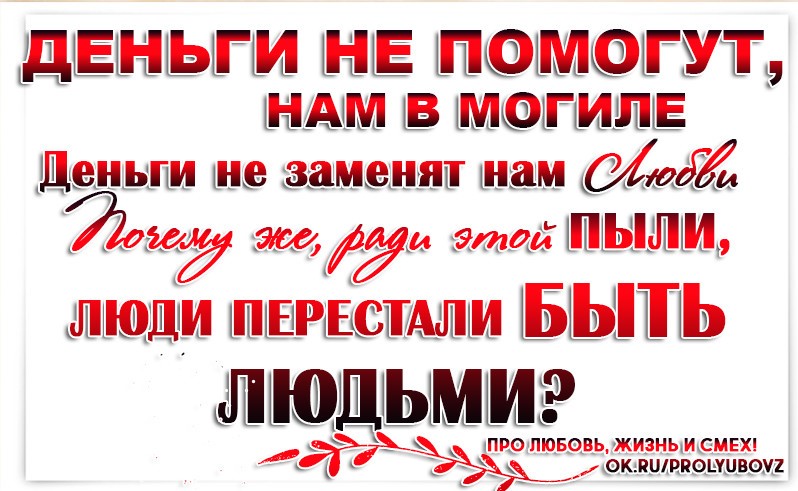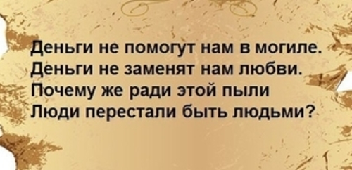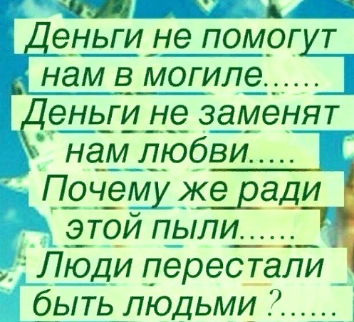 Деньги не помогут нам в могиле. Деньги не заменят нам любви. Почему же ради этой пыли Люди перестали быть людьми?! — Обсуждай*****