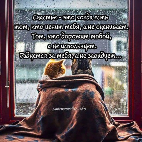 Счастье — это когда есть тот, кто ценит тебя, а не оценивает, Тот, кто дорожит тобой, а не использует. Радуется за тебя, а не завидует.