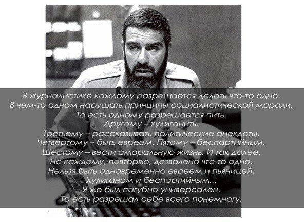 В журналистике каждому разрешается делать что-то одно. В чем-то одном нарушать принципы морали.