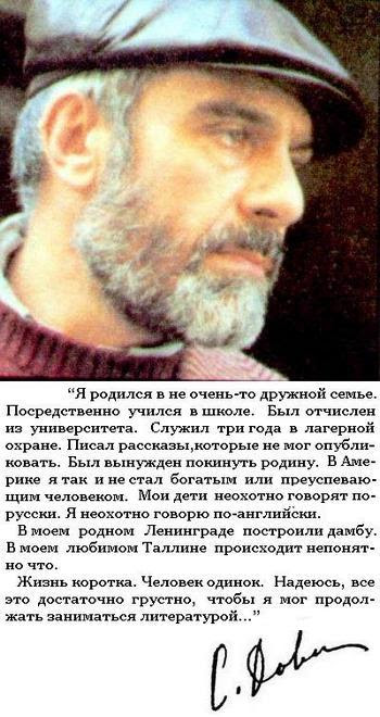 Русский писатель, журналист. Автор нашумевших произведений, двенадцати книг, которые увидели свет лишь за рубежом. В 1978 году С. Довлатов был вынужден эмигрировать в США. Среди его самых известных книг — «Зона.