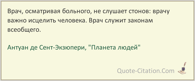 Врач, осматривая больного, не слушает стонов: врачу важно исцелить человека. Врач служит законам всеобщего. (Часть Восьмая, Люди)
