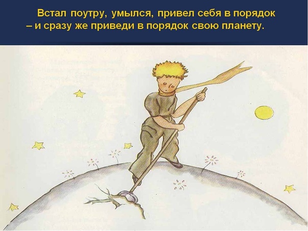— Есть такое твердое правило, — сказал мне после Маленький принц. — Встал поутру, умылся, привел себя в порядок — и сразу же приведи в порядок свою планету.[10]
