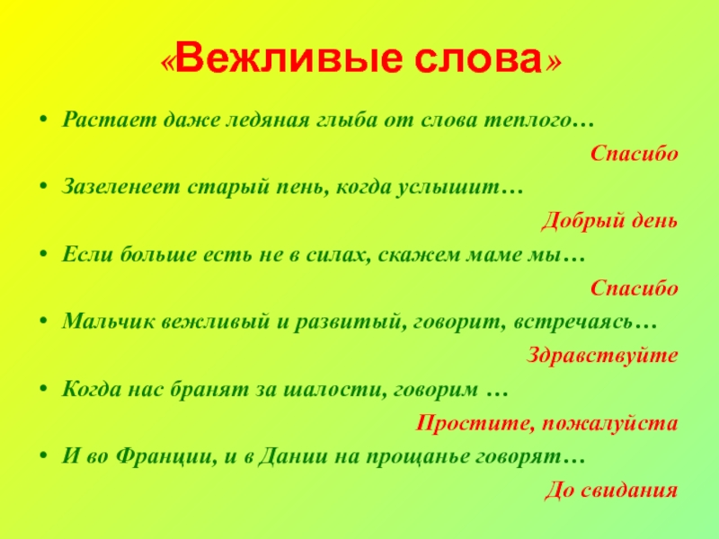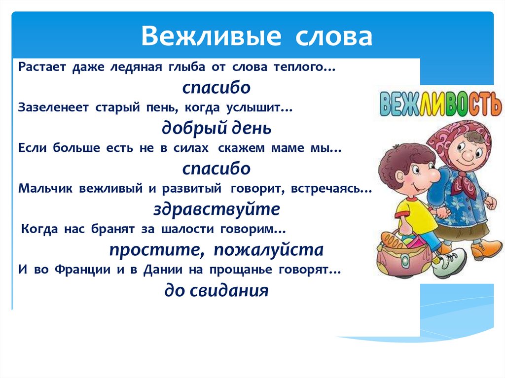 Ребята, давайте постараемся быть вежливыми всегда. И если кто-то забудет, мы ему постараемся напомнить ещё и ещё…