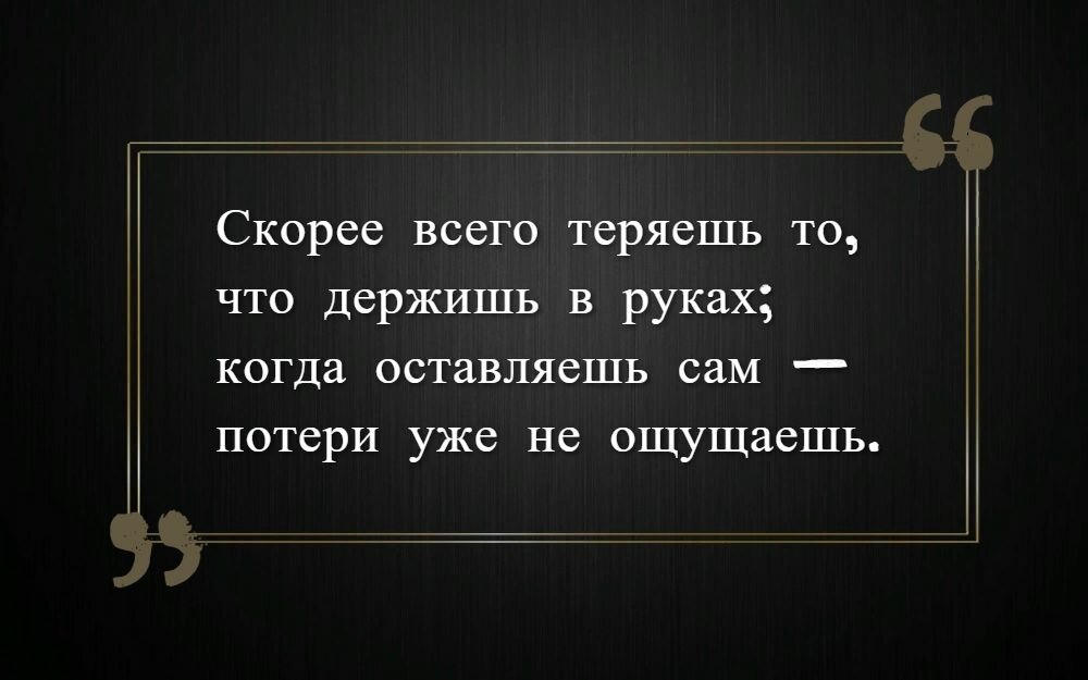 Скорее всего теряешь то, что держишь в руках; когда оставляешь сам — потери уже не ощущаешь.