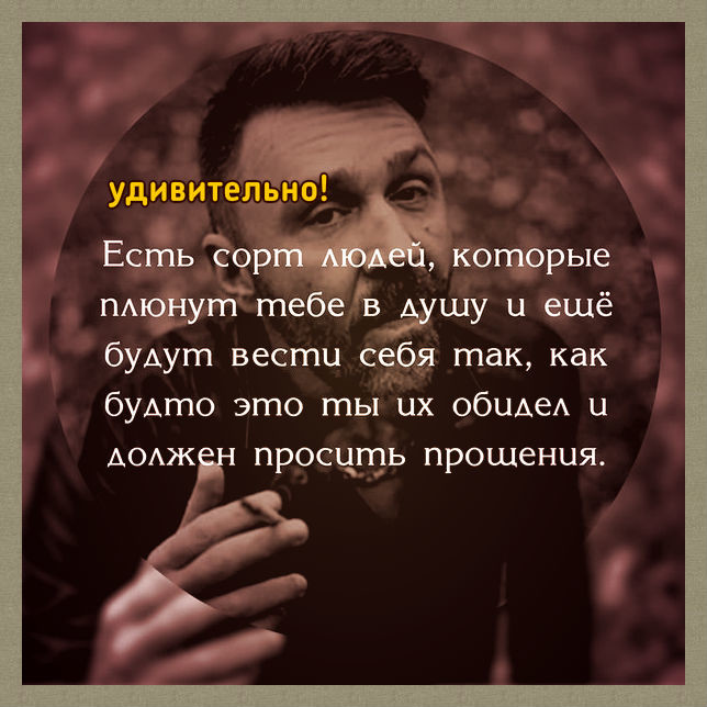 Есть сорт людей, которые плюнут тебе в душу и ещё будут вести себя так, как будто это ты их обидел и должен просить прощения.