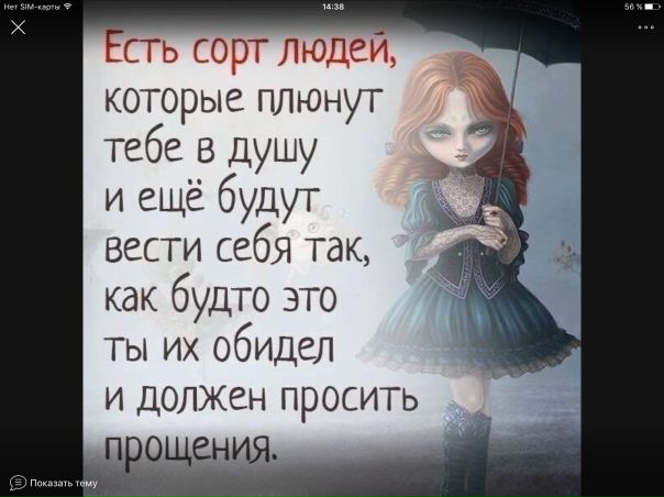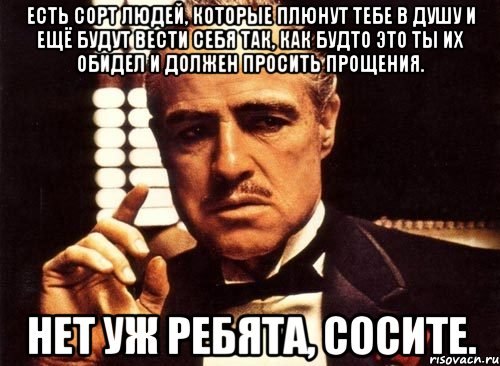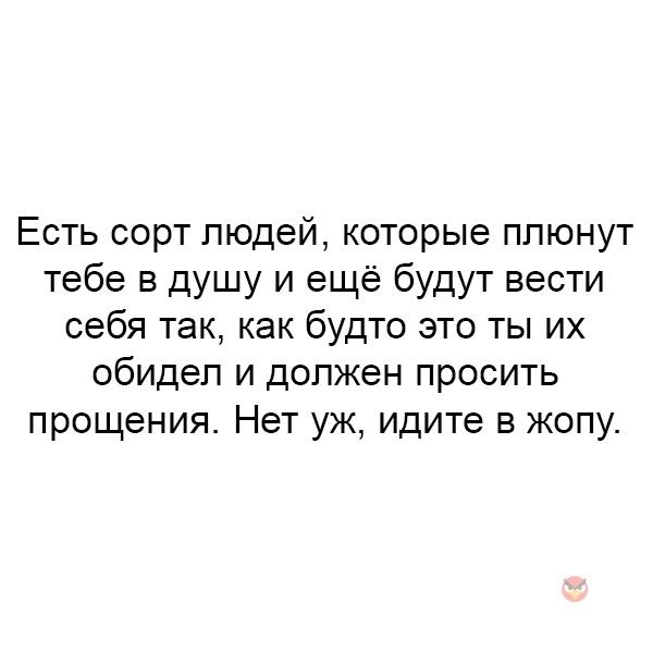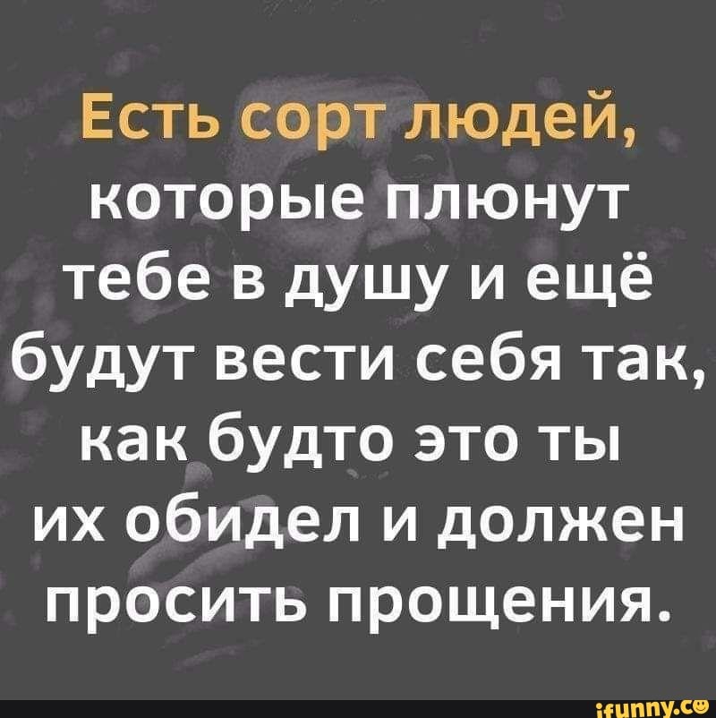Есть такой сорт людей которые плюнут тебе в душу: Есть сорт людей, которые плюнут тебе в душу и ещё будут вести себя так, как будто это ты их обидел и должен просить прощения.