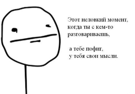 Этот неловкий момент, когда тебе рассказывают анекдот, который ты знаешь, но ты ждешь конца и наигранно хохочешь, чтобы не обидеть человека.