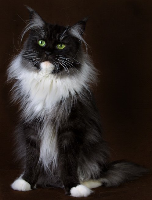 Мейн кун – солидный черный. Черные куны не редки, но невозможно найти двух одинаковых черных кунов, черный оттенок шерсти у всех разный по глубине и насыщенности.