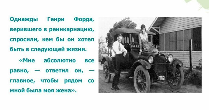 Пятьдесят лет спустя Генри Форда, верившего в реинкарнацию, спросили, кем бы он хотел быть в следующей жизни.