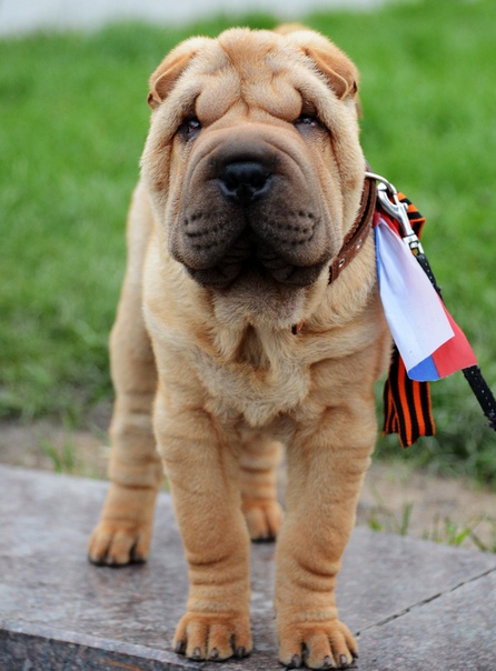 На морде черная маска с кожными складками. Корпулентность подчеркнута рельефными мышцами. Спокойная, размеренная порода для неторопливой жизни. Хороший компаньон, надежный сторожевой пес для семьи, дома.