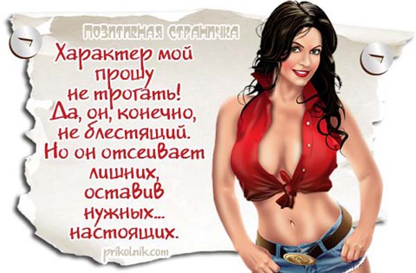 - Характер мой прошу не трогать. Да, может он и не блестящий. Но он отсеивает многих.