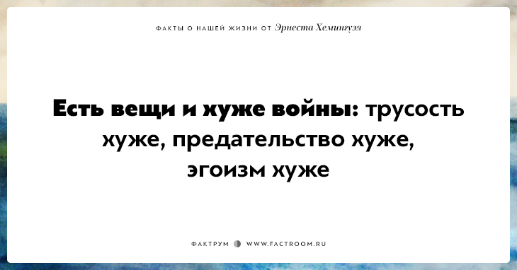 «Мир — это хорошее место, и это стоит того, чтобы за него бороться.» — Эрнест Хемингуэй