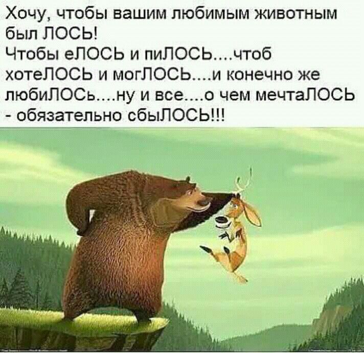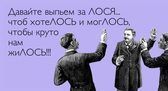 Выпьем за ЛОСЯ! Чтоб хотеЛОСЯ, могЛОСЯ, богатеЛОСЯ, е#ЛОСЯ, — за лося!окнах светят огоньки.