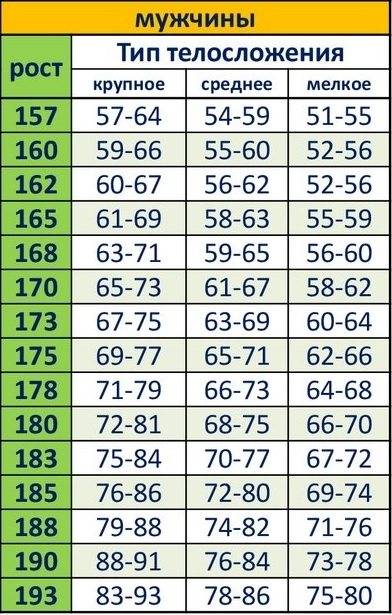 «Идеальная» масса тела — это целевой вес, рассчитанный на основе вашего роста и пола. Ниже представлена диаграмма, которую вы можете использовать для оценки своего «идеального» диапазона веса тела.