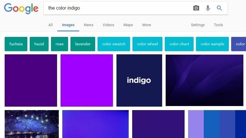 Индиго — это глубокий цвет, близкий к синему цветовому кругу (основной цвет в цветовом пространстве RGB), а также к некоторым вариантам ультрамарина на основе