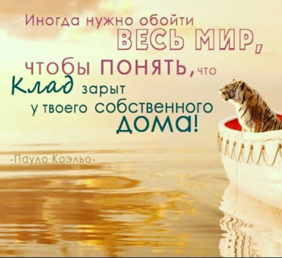 Иногда нужно обойти весь мир, чтобы понять, что клад зарыт у твоего собственного дома. © Пауло Коэльо