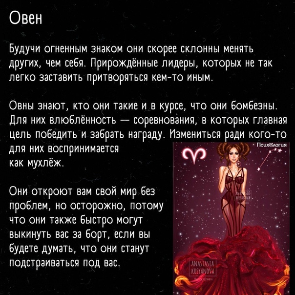 Авантюрный и напористый, Овен любит брать на себя ответственность в отношениях и, как правило, влюбляется спонтанно.
