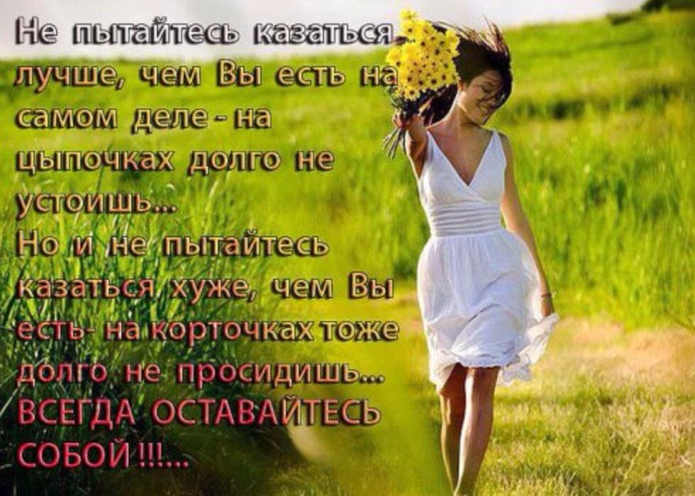 Загрузите или транслируйте сейчас на iTunes , Spotify , GooglePlay , Apple Music и AmazonMP3 Будьте собой — Мотивационное видео смотрите БЕСПЛАТНО на Youtube: Я считаю важным, чтобы мы всегда были полностью самими собой, даже если это означает, что мы не вписываемся в других людей, потому что, когда мы не являемся собой на самом деле, для нас невозможно быть счастливыми.Для нас невозможно реализовать себя. Итак, когда вы общаетесь с людьми, которым вы действительно не подходите, и у вас возникает это чувство глубоко внутри, это ваше внутреннее Я говорит вам, что вам не комфортно, что означает, что вы несчастливы, так что это супер важно, чтобы мы всегда были полностью самими собой. Будь верен тебе. Видите, никто не может сказать вам, что такое успешная жизнь. Никто не может сказать вам, что такое прекрасная жизнь. Никто не может сказать вам, как быть счастливым или что вы должны или не должны делать в своей жизни.Никто не может. Потому что ВЫ уникальны. То, что успех для другого, может не быть успехом для вас. То, что является прекрасной жизнью для другого, может оказаться не таким уж большим для вас. То, что загорается другим, может приглушить ваш свет. ЕДИНСТВЕННЫЙ способ быть счастливым в этой жизни… ЕДИНСТВЕННЫЙ способ добиться успеха… А теперь послушайте, единственный способ получить от этой жизни максимум удовольствия — это следовать своим собственным путем! Чтобы следовать своей интуиции.Слушать собственное сердце. Вот где ответы. Ответ на каждый вопрос, на который вам нужен ответ. Очень многие несчастны в этом мире, потому что они живут жизнью, которой не хотят жить, чтобы они могли вписаться в нее, или, может быть, кто-то совершенно отличный от них посоветовал им, как им следует жить. ВЫ УНИКАЛЬНЫЕ. Вы должны следовать своим УНИКАЛЬНЫМ путем. Будь собой! Это не значит, что нет полезной информации.Есть так много замечательных учителей, у которых можно учиться. Это просто означает, что вы принимаете только то, что резонирует с вами. То, что вы ЗНАЕТЕ, будет работать на ВАС. Выйди из головы в свое сердце. Делай то, что заставляет тебя загораться! Делайте то, что заставляет вас забыть проверить свой телефон. Больше того, что заставляет вас улыбаться, БОЛЬШЕ того, что заставляет вас смеяться, как маленький ребенок! БОЛЬШЕ того, чем ВЫ гордитесь тем, что являетесь ВАМИ! Будь храбрым! У тебя есть только один шанс в этой жизни.Одна возможность ПОЛНОСТЬЮ ЖИТЬ. Одна возможность творить ВОЛШЕБСТВО. Иногда можно сказать «нет». Сказать «нет» со СТРАСТЬЮ. С подлинной уверенностью, потому что вы знаете, что лучше для вас! Не всем это достанется, и это нормально. Правильные люди пойдут с вами по пути, и большинство из них не сможет сопротивляться … потому что тот, кто ИСТИННО, искренне любит жизнь, делает ТОЧНО то, что они хотят делать … этот человек заразен! Настоящая страсть заразительна! Просыпайтесь со страстью каждый день! Просыпайтесь КАЖДЫЙ ДЕНЬ и будьте НИКОМ, кроме ПОЛНОСТЬЮ, 100% ВАМИ! Я считаю, что важно идти ко всему, что мы хотим в жизни, потому что у нас есть только одна жизнь, чтобы прожить Будь собой, все остальные уже заняты — Оскар Уайльд Нажмите, чтобы написать твит