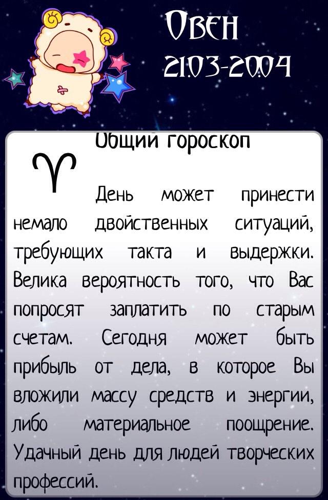 Солнечный день дарит Овнам энергию и заряжает оптимизмом, а Луна учит правильно её распределять. Энергичным Овнам порой сложно уснуть. Чтобы расслабиться и снять возбуждение, необходимо распылить в спальне воду с добавлением любимых эфирных масел. Также наклоны вперёд, сидя на диване, помогут заснуть быстрее.